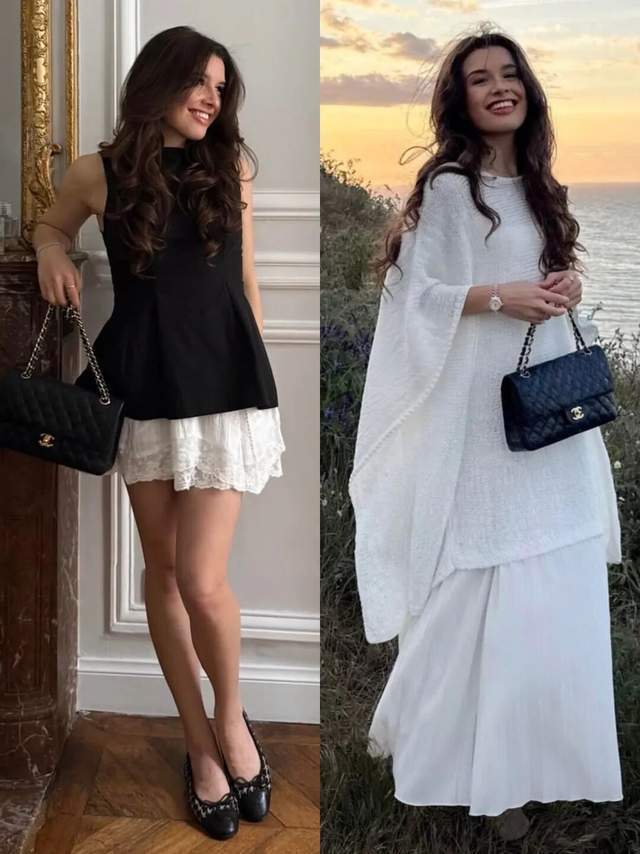 偏疼女东说念主味又显得相比俏皮的打扮作风,可选最肤浅的短长色调穿搭,一件无袖的玄色上衣配上白色的蕾丝薄纱短裙。脚踩一对格纹的玛丽珍鞋,聚合上优雅大气的海潮造型,就能呈现出属于你的气质与优雅。