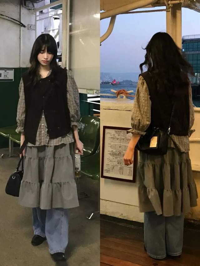 穿衣造型一定要懂得作念减法搭配,举例上头用玄色马甲叠穿小众衬衫,再搭配上一条蛋糕半裙叠穿牛仔直筒裤,看似很个性,然则的确很挑气质。
